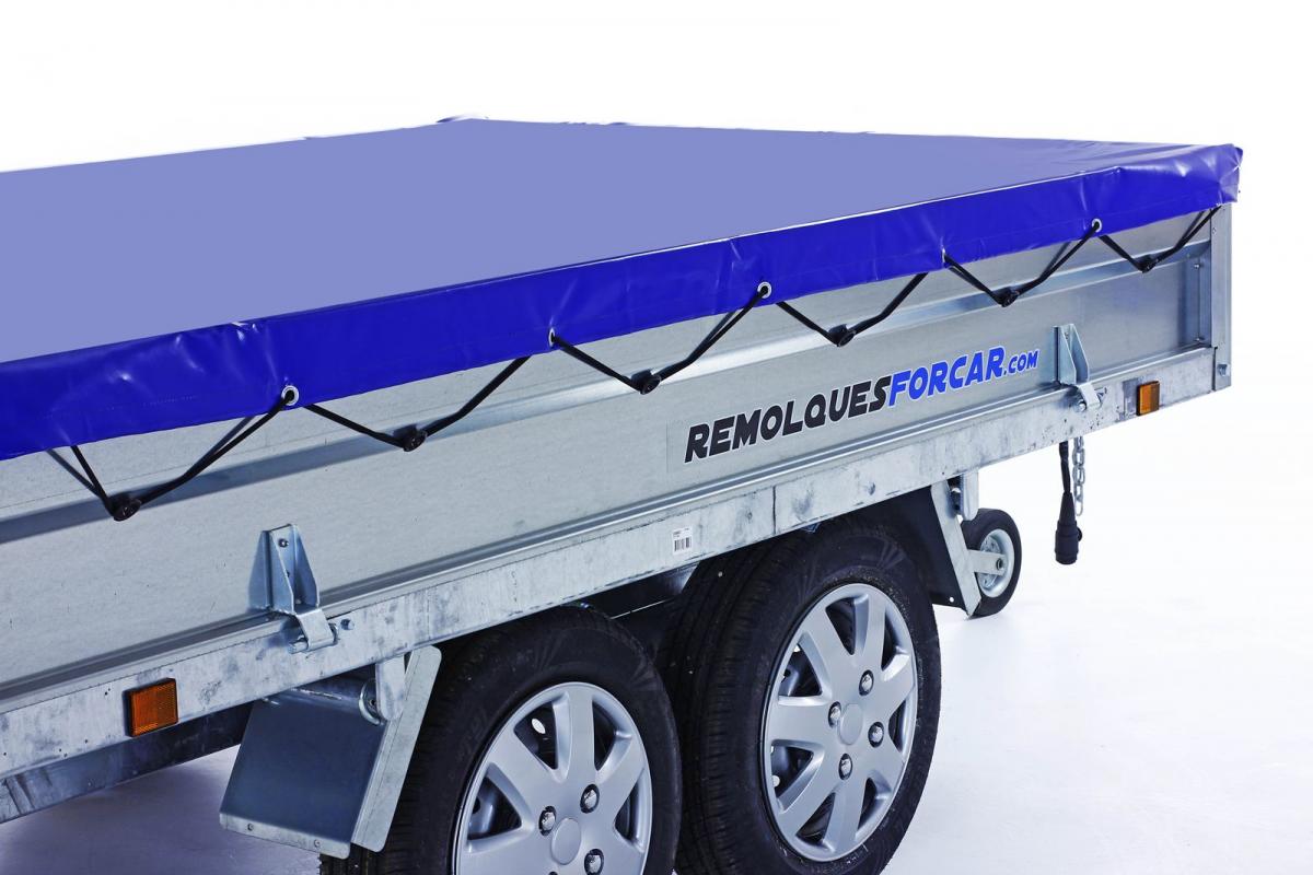 Su sujeción se realiza mediante una cuerda elástica dispuesta en todo  su perímetro a través de ojales metálicos, una vez pasada la cuerda, por cada uno de los botones que llevan los remolque en sus laterales, solo necesitarás estirar la cuerda por los dos extremos, preparados a modo de ojales, hasta dejar la lona bien ajustada, pasándolos por el botón más adecuado para que la lona quede bien tensada.