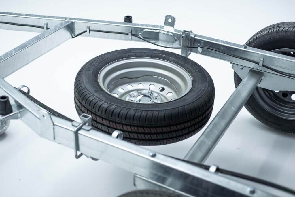 Este remolque de carga con basculación por bomba hidráulica se fabrica sobre dos ejes de 500 kg y con 4 ruedas 155/70R13 que proporcionan una mayor adherencia. Esto aumenta la estabilidad en la conducción al ofrecer un mayor punto de apoyo y de equilibrio en el remolque, evitando que su peso del remolque sobre el enganche del vehículo, y así la suspensión se vea menos forzada.