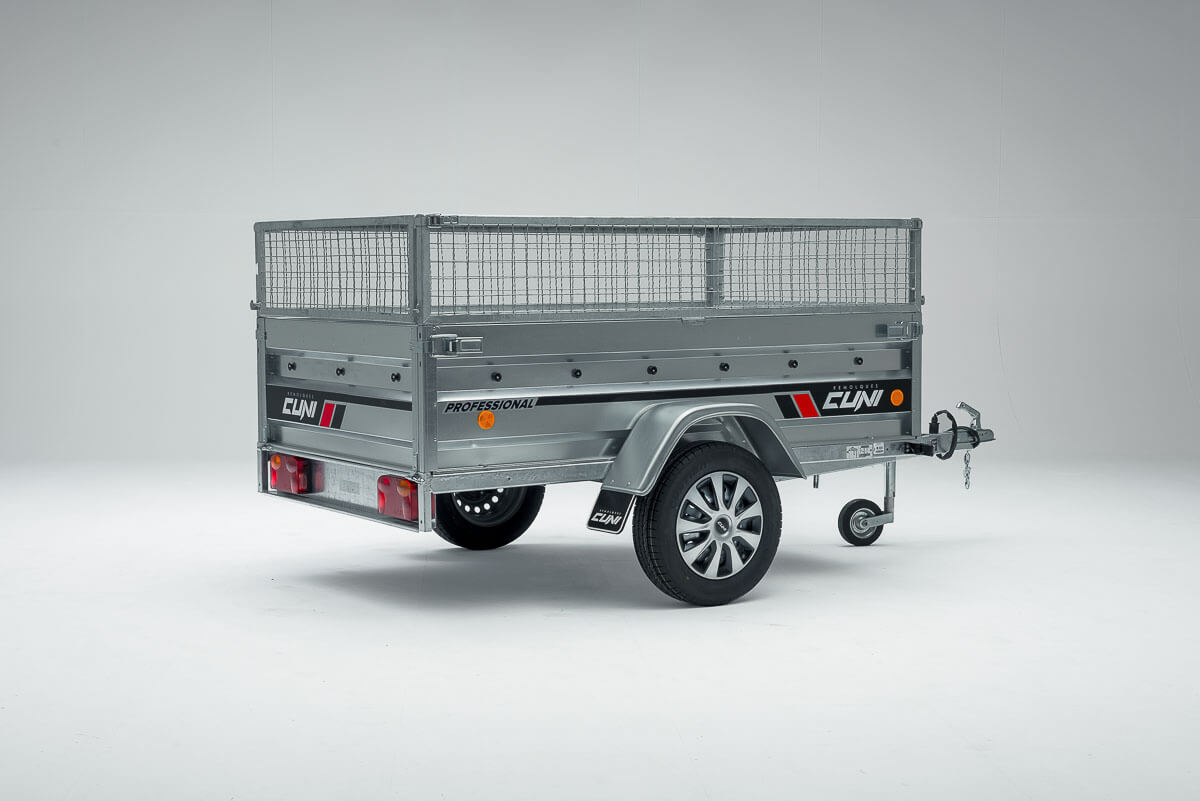 El remolque para coche CUNI 205 está montado sobre un chasis de acero soldado y galvanizado en caliente, que le proporciona toda la fortaleza de los grandes remolques a la vez que lo protege de la corrosión y, de este modo, asegura su durabilidad.