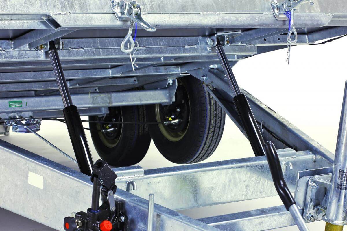 El remolque TOPLINE 660 cuenta con 2 ejes de 1800 kg, ofreciendo una carga útil de hasta 2770 kg. Proporcionan mayor estabilidad y distribución del peso para una conducción segura.