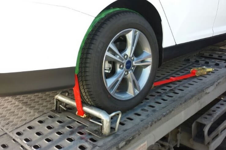 El CALZO para rueda se fija en el remolque para evitar que el vehículo que se transporta se mueva hacia...
