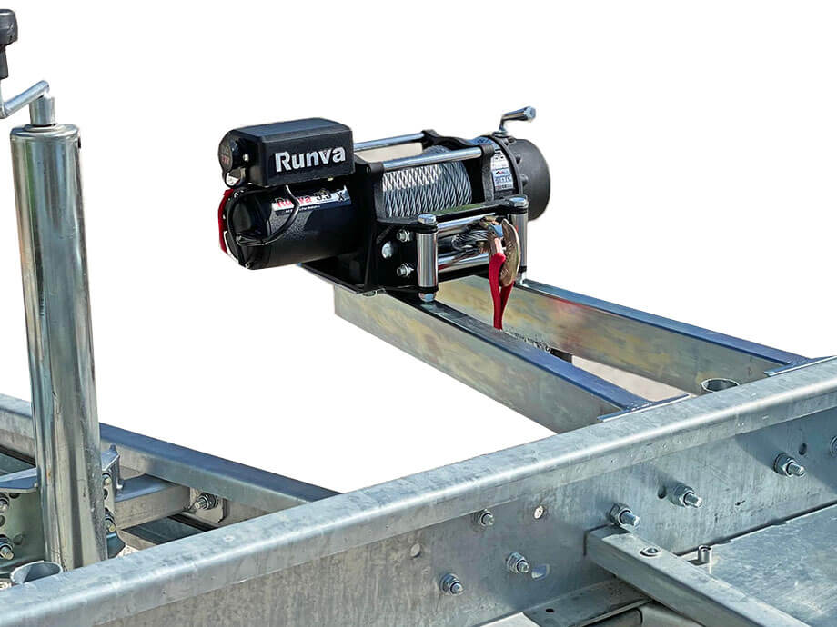 El remolque JARAMA puede equiparse con un cabrestante manual o eléctrico, facilitando la carga y descarga del vehículo al permitir un arrastre suave y controlado del mismo.